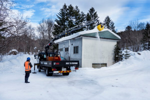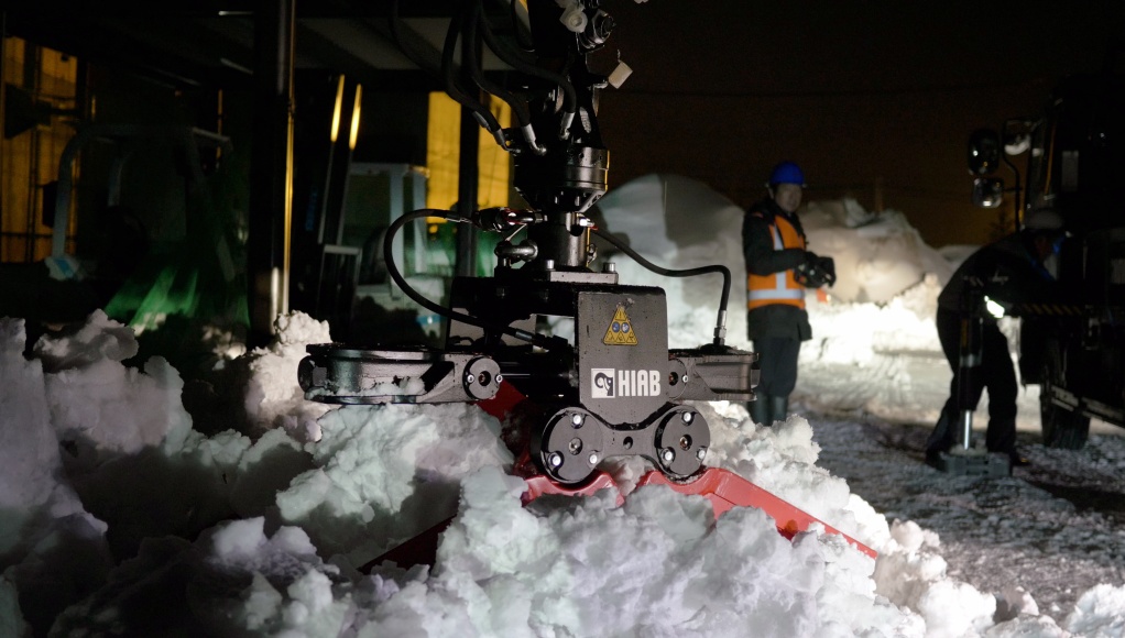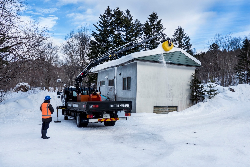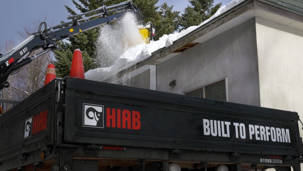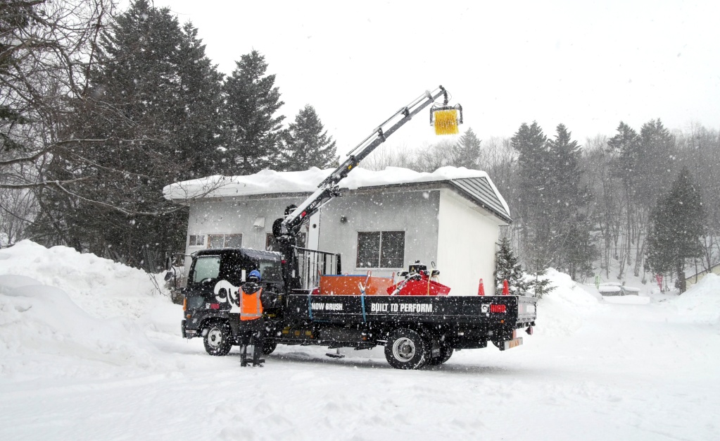 HIAB Multi Brush - entworfen, um Schnee von Dächern und anderen schwer erreichbaren Orten zu entfernen.
